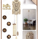 De houten 3D-puzzel Koninklijke klok van WOODEN CITY is een buitengewoon mooi en uniek model. Het complexe slingermechanisme en de gedetailleerde houtsnijwerken geven de klok een nobele charme en zorgen voor zowel functionaliteit als esthetiek.