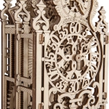 De houten 3D-puzzel WOODEN CITY Koninklijke klok is een prachtig meesterwerk met geavanceerde details en elegante lijnen. Een ideaal cadeau voor liefhebbers van schoonheid en verrassingen. Het model is geïnspireerd op de rococostijl en bevat gedetailleerde uitgesneden verstrengelde patronen. De Koninklijke klok is ontworpen om te functioneren als een echte tijdmeter met een aanpasbare slingerperiode, die afhangt van het aantal ingelegde munten.