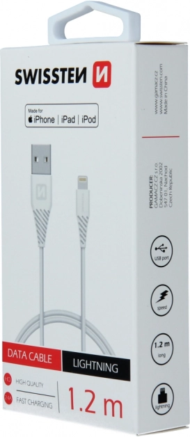 Swissten TPE-datakabel USB/LIGHTNING met MFI-certificering, lengte 1,2 m. Verpakt in Swissten retailverpakking.