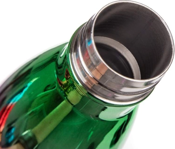 De FLAMENCO thermosfles met een inhoud van 500 ml heeft een buiten- en binnenkant van roestvrij staal en een kunststof dop. Dankzij de dubbelwandige constructie behoudt de drank langer zijn temperatuur. De thermosfles heeft een zeer opvallend, glanzend design in regenboogkleuren.