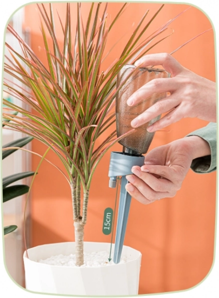 • Eenvoudige installatie: geen gereedschap nodig, gewoon op de fles schroeven en in de aarde steken.