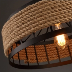 Deze plafondlamp combineert vintage stijl met moderne details en is een perfecte decoratie voor uw woonkamer of eetkamer, vooral als verlichting boven een tafel, bank of bar. Dankzij het originele ontwerp en de stevige afwerking van metaal en henneptouw komt de lamp ook uitstekend tot zijn recht in moderne restaurants, hotels, cafés en bars. Ze hangt aan een ⚓ originele ketting en heeft een standaard E27 fitting voor de lichtbron.