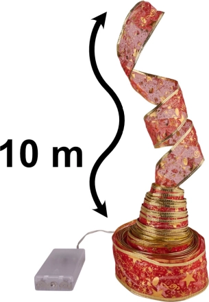 Dit kerstlint combineert een decoratieve uitstraling met lichteffect. De goud-rode band met geïntegreerde LED's geeft over de hele lengte een zacht, kleurrijk licht en is perfect voor de kerstboom, leuningen, schouw of feestelijke arrangementen. Door de batterijvoeding is gebruik zonder stopcontact mogelijk.