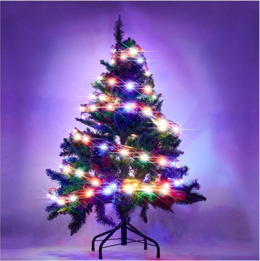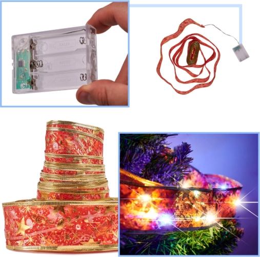 Laat je kerstdecoratie stralen met het lichtgevende decoratieve LED-lint van 10 m met 100 LED's in multicolor. Dankzij de batterijvoeding plaats je het overal, 8 lichtmodi zorgen voor de juiste sfeer en het flexibele ontwerp laat zich gemakkelijk vormen rond de boom, kransen en andere decoraties.