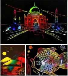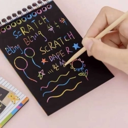 De set versierkaarten is een creatieve en leuke activiteit voor kinderen die hun verbeelding prikkelt. Bevat 10 kaartjes en een veilig houten kraspotlood, waarmee kinderen hun eigen afbeeldingen kunnen maken zonder risico op verwondingen.