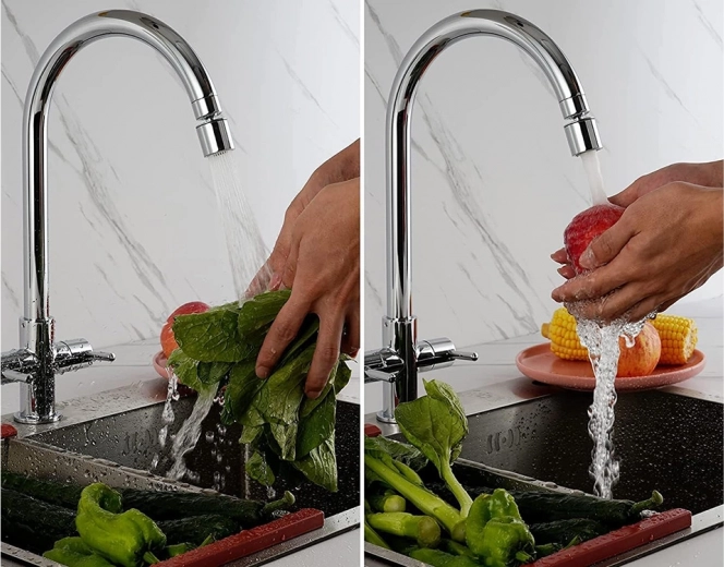 Verander een gewone kraan in een praktische hulp – deze beweegbare perlator met 360° rotatie en 2 straalmodi maakt het afwassen en spoelen van ingrediënten gemakkelijker, verhoogt het gebruiksgemak en bespaart tegelijk water. Dankzij de eenvoudige installatie en de universele schroefdraad past hij op de meeste kranen en zorgt hij voor een optimale doorstroming precies naar behoefte.