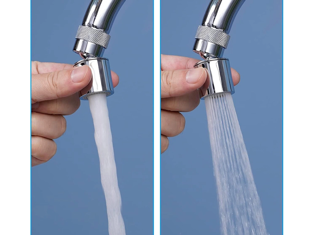 Deze praktische kraanopzetstuk maakt van wassen een comfortabele en zuinige routine. Met de 360° draaibare kop richt je de straal precies waar je hem nodig hebt en met de schakelaar kies je tussen een volle en een vernevelde straal. De perlator helpt het waterverbruik te verlagen zonder comfortverlies.