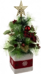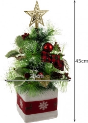 Feestelijke decoratie die onmiddellijk uw ruimte verfraait! Deze compacte kunstmatige kerstboom is ideaal voor de decoratie van een tafel, plank of vensterbank. Met vooraf gedecoreerde takken bespaart u tijd en geld.