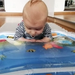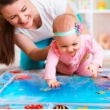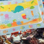De opblaasbare sensorische watermat is ontworpen om de zintuigen van uw kind te stimuleren via verschillende texturen, kleuren en vormen. Kinderen kunnen spelen met de bewegende vormen binnenin de mat, wat helpt bij de ontwikkeling van hand-oogcoördinatie.