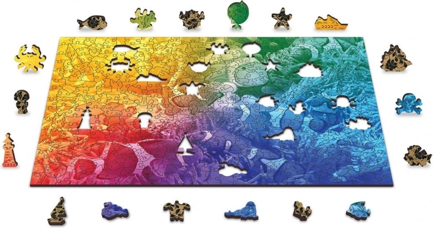 Ontdek het plezier en de uitdaging van de houten puzzel WOODEN CITY met een motief van tropische vissen. Laser-gesneden stukjes met 61 unieke vormen leg je aan beide zijden – voorkant met afbeelding, achterkant met patroon. De duurzame HDF-plaat, gladde randen en eco-verpakking zonder plastic maken van deze dubbelzijdige 2-in-1 puzzel een doordacht cadeau en heerlijke ontspanning.
