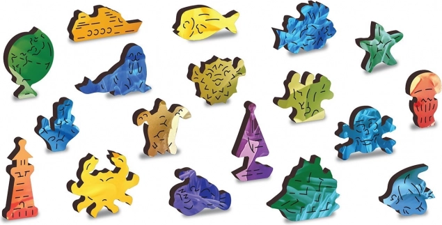 Tussen de 400 stukjes vind je 61 speciale vormen – vissen, zeesterren en andere maritieme motieven. Sommige stukjes kunnen zelfstandig staan als kleine figuurtjes, wat het leggen nog leuker maakt.