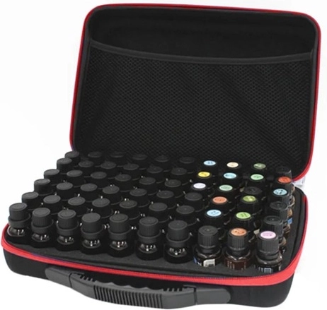De schuiminzet met precieze uitsparingen houdt tot 60 flesjes van 10 ml veilig op hun plaats – ideaal voor nagellakken, etherische oliën en andere kleine items.