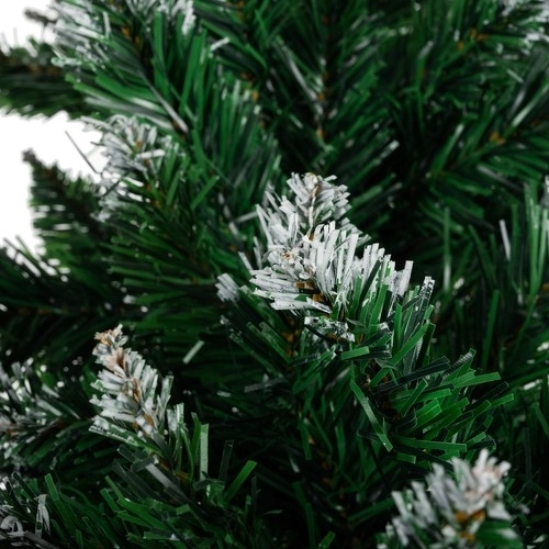 Groen PVC-naaldgroen met witte tips imiteert levensecht besneeuwde takjes en creëert een elegante wintersfeer zonder uitval.