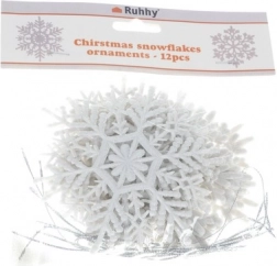 Specificaties - kleur: wit met glitter; materiaal: kunststof; aantal stuks: 12; afmetingen variant 1: 10 x 9 cm; afmetingen variant 2: 9,5 x 9 cm; gewicht: 48 g; setgewicht: 52 g.