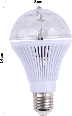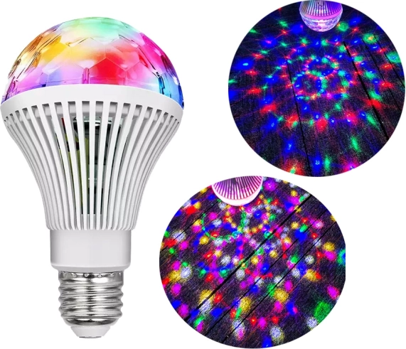 Verander de kamer in een mini-discotheek in een handomdraai. De roterende RGB LED-lamp met E27-fitting biedt levendige kleureffecten, automatische rotatie, eenvoudige installatie en een zuinig vermogen van 3 W.