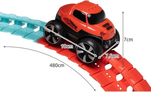 Bouw je eigen racecircuit tot wel 4,8 m lang van 192 flexibele delen en ga los met gekke loopings, hellingen en bochten! Inclusief een LED-autootje op batterijen met verwisselbare carrosserie (rood of blauw). De baan is eenvoudig te monteren, kleurrijk en stimuleert op geweldige wijze de creativiteit, motoriek en verbeelding van kinderen.