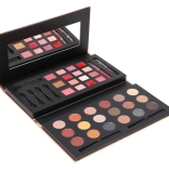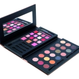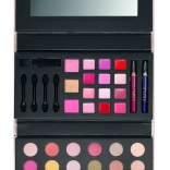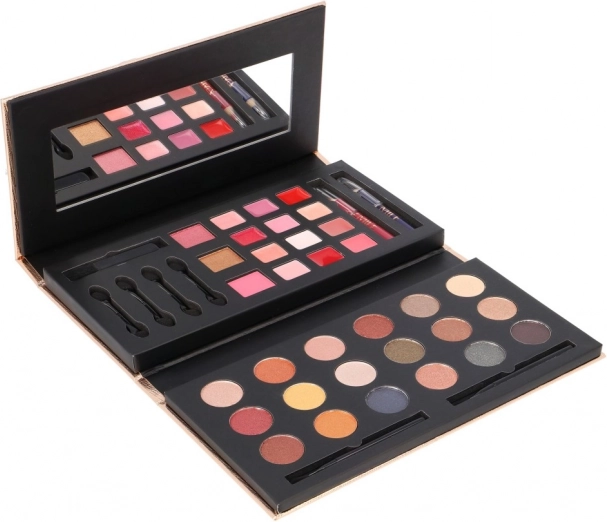 Uitschuifbaar cosmetisch palet ‘Glam To Go’ – in twee lagen bevat het 18× oogschaduw, 12× crèmelippenstift, een blush, een bronzingpoeder, 1× oogpotlood, 1× lippotlood, 1× applicator en een geïntegreerde spiegel. Dermatologisch getest, voldoet aan de strenge EU-normen.