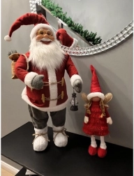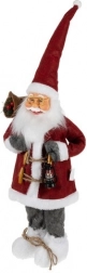 Dankzij de hoogte van 60 cm valt hij prachtig op en blijft hij toch praktisch te plaatsen, ook in kleinere ruimtes. Het gedetailleerde gezicht, de donzige baard en accessoires zoals een lantaarn en een zakje met takjes benadrukken de realistische en elegante uitvoering.