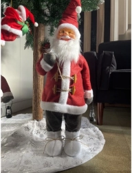 Deze charmante KERSTMAN in een traditionele rode jas met witte bies en iconische gouden bril brengt warmte en de magie van Kerst in elke ruimte. Ideaal als eyecatcher op de vloer, bij de kerstboom of in een etalage.