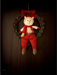 Het schattige textielen elffiguurtje in rood pak en sjaal geeft de krans een speelse touch en huiselijke warmte. Perfect voor gezellige kerstdecoratie met het gezin.