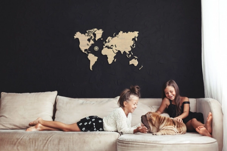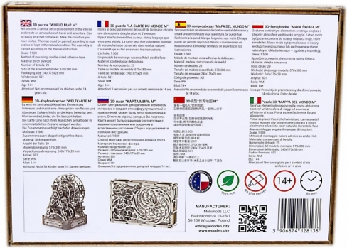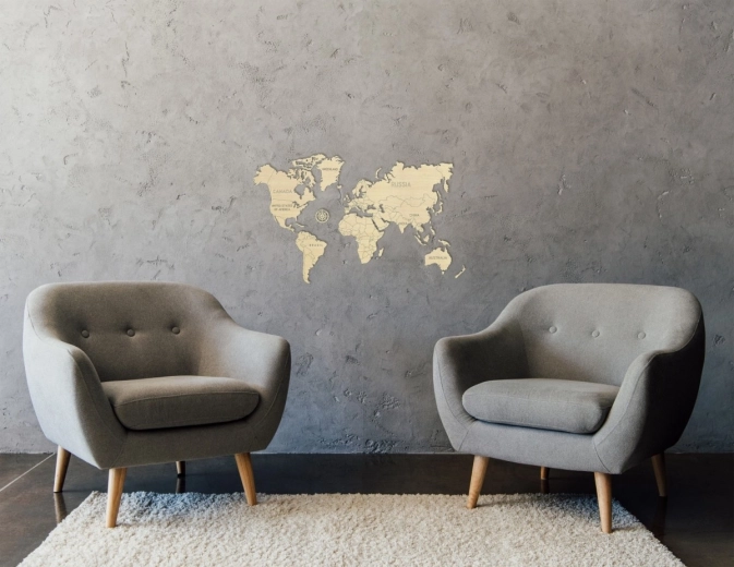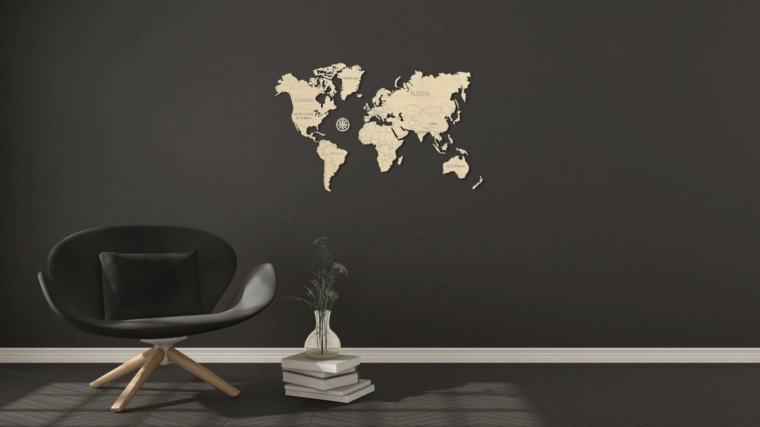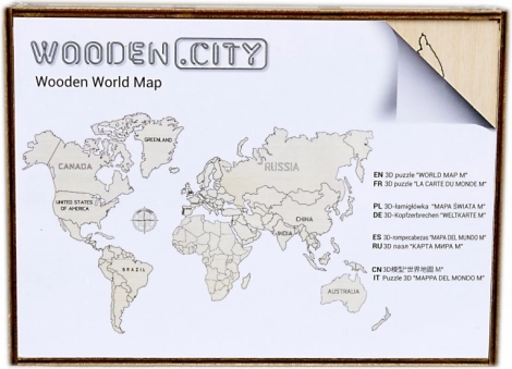 Een stijlvolle houten wereldkaart voor aan de muur in maat M van het merk WOODEN CITY, ideaal als designdecoratie en origineel cadeau voor liefhebbers van reizen. Gemaakt van hoogwaardige berkenmul... Meer tonen