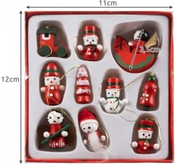 Verrijk uw kerstdecoratie met een set van 10 stuks houten versieringen: houten ster, Sint-Nicolaas, bel en andere motieven die winterse sferen oproepen.