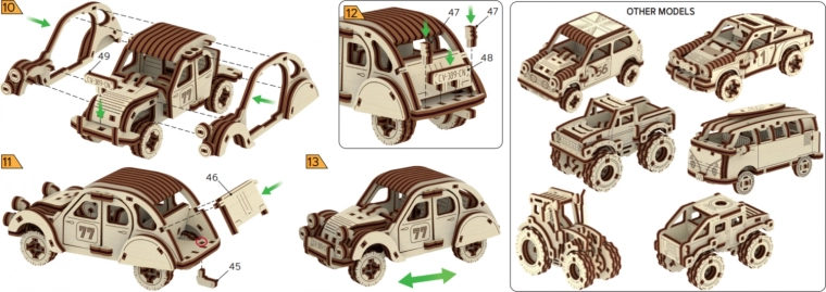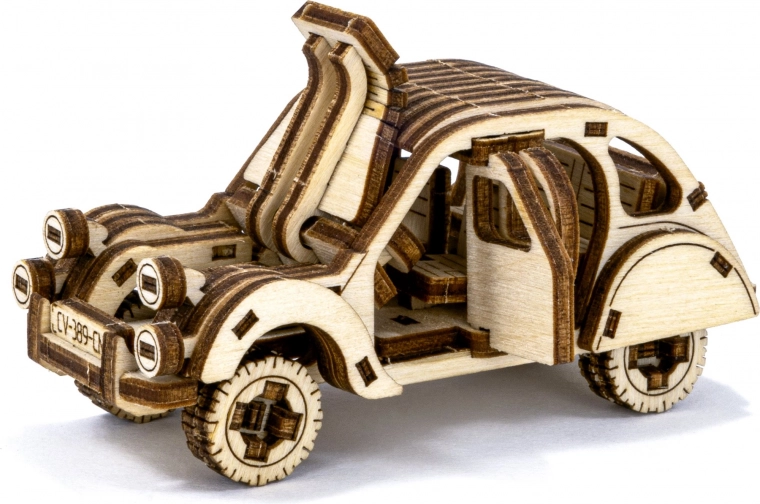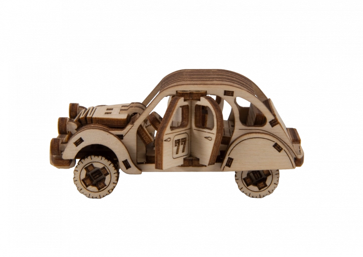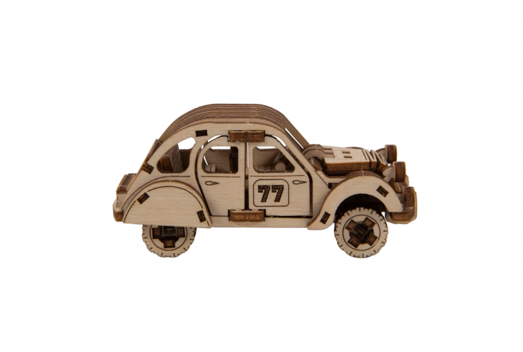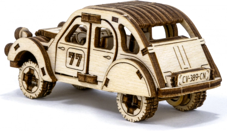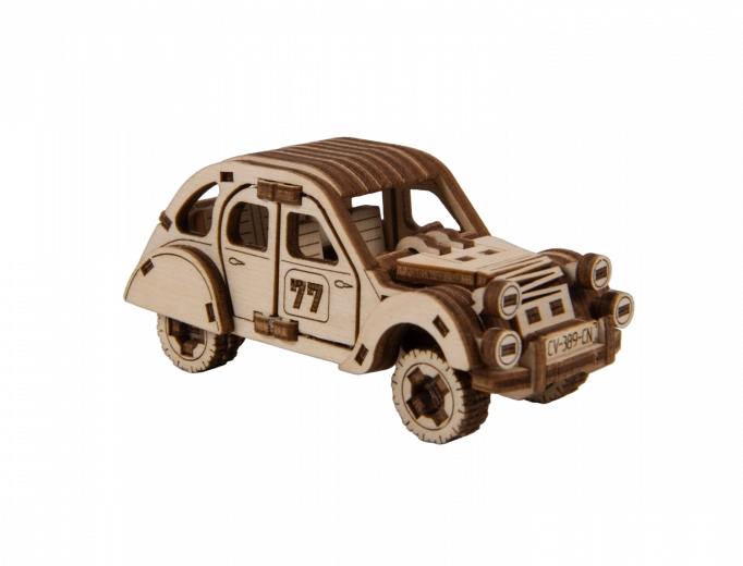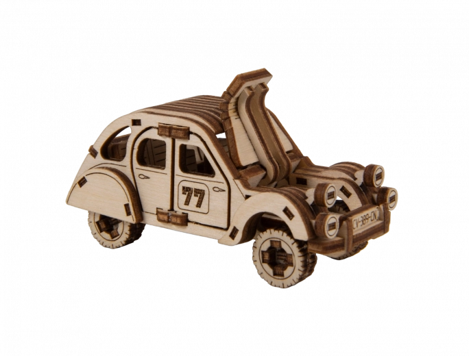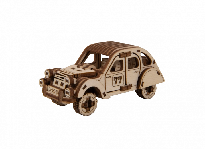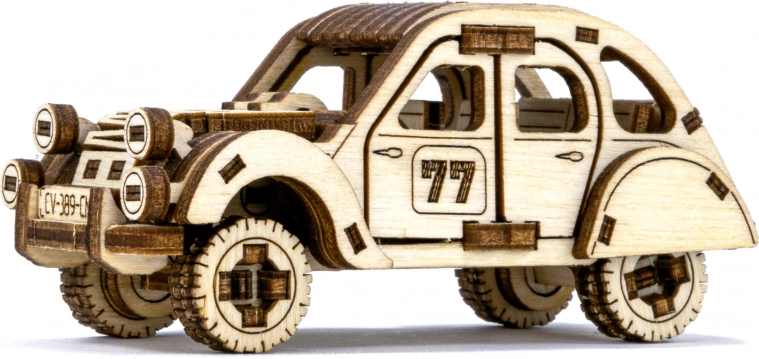 Dit model van een rallyauto biedt een aantrekkelijke combinatie van creatief plezier en elegante interieurdecoratie. De onderdelen van eersteklas berkenmultiplex klikken precies in elkaar – zonder lijm en schroeven – met als resultaat een indrukwekkende retroauto met tal van fijne details.