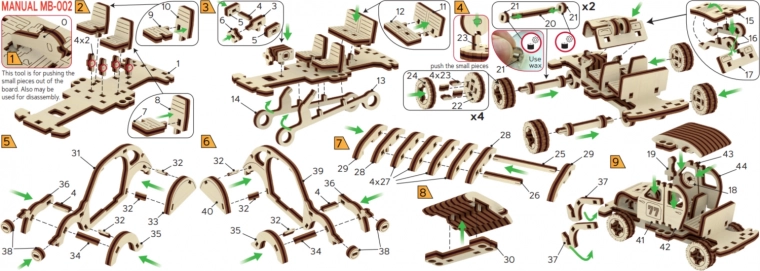 Doordachte uitsparingen van top-grade multiplex klikken precies in elkaar. De montage is schoon, snel en geschikt vanaf 8 jaar.