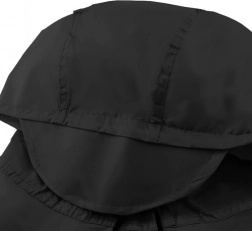 De verstelbare capuchon met koorden en een praktische klep beschermt het gezicht en verhoogt het comfort tijdens het fietsen of wandelen in de regen.