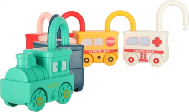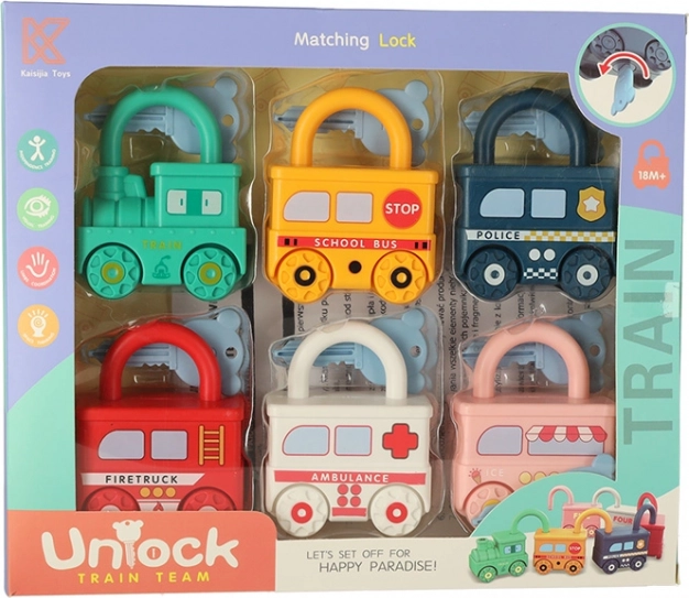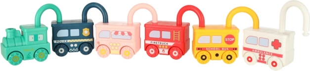 Ontdek een slimme Montessori-speelgoedset die fijne motoriek, oog-handcoördinatie en logisch denken stimuleert. Elk voertuigje heeft zijn eigen slot en wordt geopend met de juiste sleutel – op basis van nummers, het aantal wieltjes op het plaatje of door proberen en ontdekken. Na het openen kunnen de autootjes worden gekoppeld tot een bont treintje voor een imaginaire reis door de kamer.