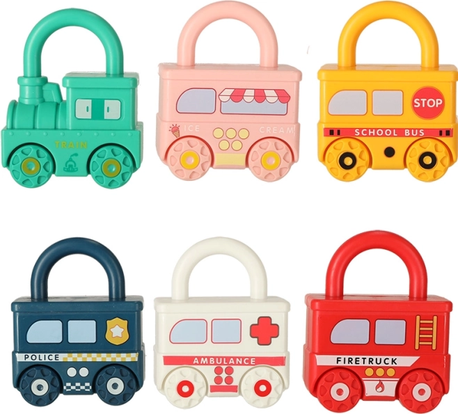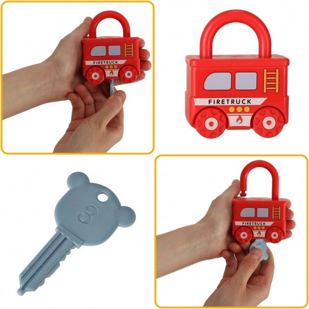 Elk voertuig heeft een opvallende kleur en een aantal wieltjes voor eenvoudig matchen met de genummerde sleutels. Kinderen leren spelenderwijs kleuren, tellen en sorteren.