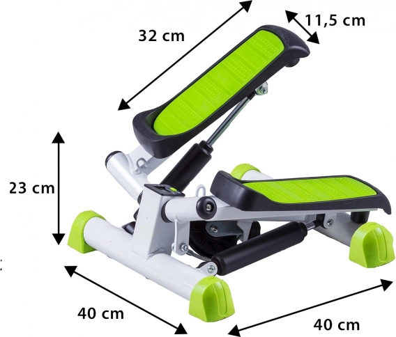 Het geïntegreerde LCD-display volgt de belangrijkste gegevens – tijd, stappen per minuut, totaal aantal stappen en verbrande calorieën. Dankzij de weerstandsinstelling pas je de intensiteit eenvoudig aan je doelen aan, en de antislip voetplaten geven zekerheid bij dynamische oefeningen.