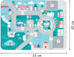 Deze set is geschilderd met ecologische verven, veilig voor kinderen. De puzzelbasis met stadsweg stelt je in staat een complex speelterrein te creëren dat creatieve en interactieve spellen ondersteunt.