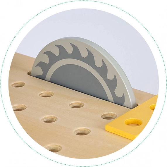 Veiligheid en leren: De werkplaats is gemaakt van natuurlijk hout, afgewerkt met veilige coatings en zonder scherpe randen, wat de veiligheid voor uw kind garandeert. Spelen met de werkplaats helpt kinderen de oog-handcoördinatie te ontwikkelen en geeft hen de mogelijkheid om vaardigheden te oefenen die later van pas komen.