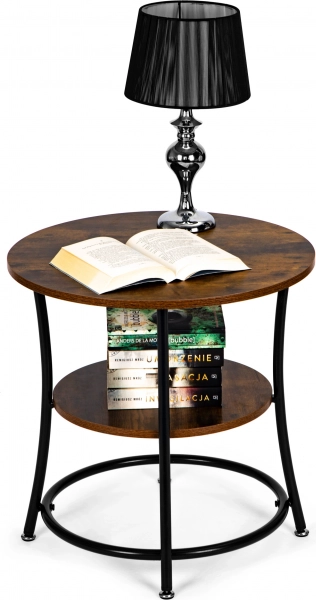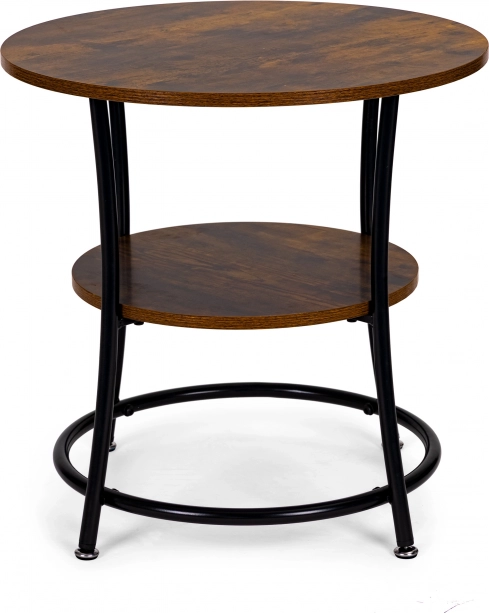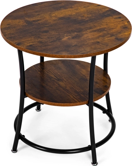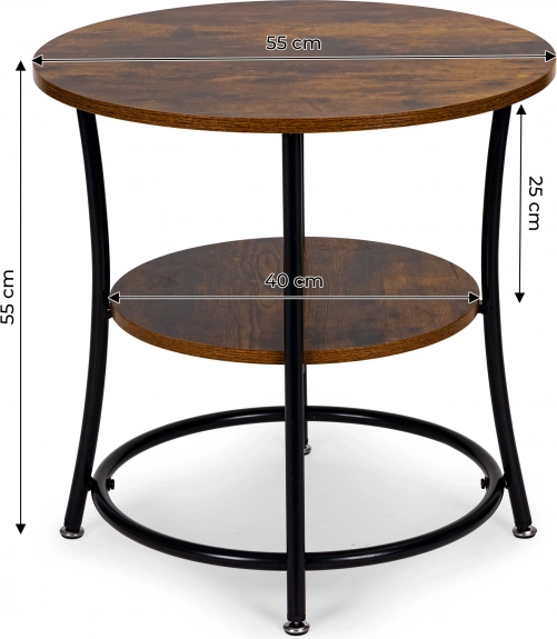 De tafel bestaat uit een stevig metalen frame met poedercoating en twee planken van spaanplaat met een houtlook fineer. Verstelbare voetjes zorgen voor perfecte uitlijning van de tafel en beschermen de vloer tegen krassen.