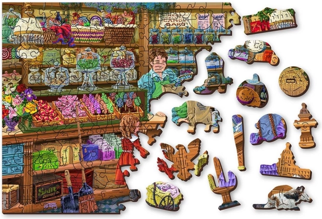 Houten dubbelzijdige puzzel WOODEN CITY – Zoete Avonturen 2-in-1 biedt 400 stukjes die nauwkeurig met laser zijn gesneden en 60 uniek gevormde stukjes in de vorm van dieren, gebouwen of voorwerpen. Geniet van een hogere moeilijkheidsgraad dankzij de gevarieerde vormen, dubbelzijdig puzzelen op afbeelding of patroon en een eco-uitvoering zonder plastic. Gladde randen, hoogwaardig HDF-plaatmateriaal en een losse voorbeeldafbeelding in de doos maken van deze puzzel een geweldig cadeau voor elke gelegenheid.