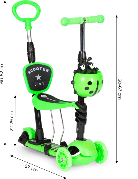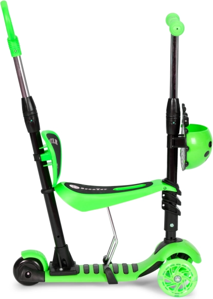 De step is uitgerust met een duwstang, ideaal voor jonge kinderen die nog niet zelfstandig kunnen rijden. De lichtgevende wielen zorgen niet alleen voor een geweldig effect, maar verhogen ook de zichtbaarheid, wat extra veiligheid biedt bij rijden in de schemering. Het antislip deck zorgt voor stabiele grip en minimaliseert het risico op vallen.