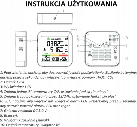 Dit apparaat kan gelijktijdig de binnentemperatuur, luchtvochtigheid, TVOC-niveau en CO2-concentratie meten, waardoor u een compleet beeld krijgt van de luchtkwaliteit.