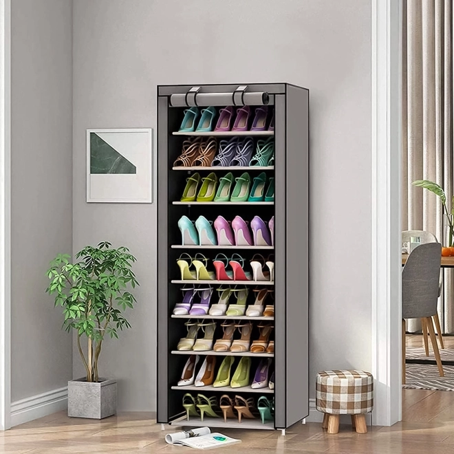 Deze textielkast is een ideale oplossing voor de slaapkamer, hal en badkamer. Het meerlagige planksysteem biedt voldoende ruimte voor T-shirts, truien, handtassen en schoenen, terwijl de oprolbare hoes met rits de inhoud beschermt tegen stof en vocht en snelle toegang biedt tot je spullen.
