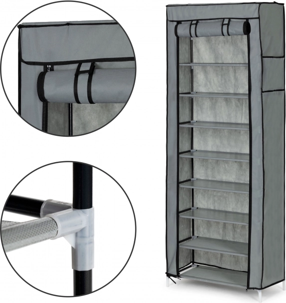 Het stabiele frame van metalen buizen met kunststof koppelingen garandeert de stevigheid van de hele constructie. De planken van duurzaam textiel zijn tussen de buizen opgespannen, wat extra stijfheid geeft en comfortabel, overzichtelijk opbergen mogelijk maakt. Dankzij een plankafstand van circa 15 cm rangschik je kleding en schoenen eenvoudig.