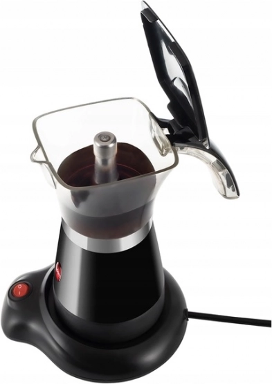 Veilige en comfortabele handling wordt gegarandeerd door de 360° draaibare basis en het scharnierende deksel. Met een vermogen van 480 W zet je snel tot 6 kopjes heerlijke koffie met een volle aroma. De zwarte uitvoering laat zich eenvoudig combineren met elke keukenstijl.