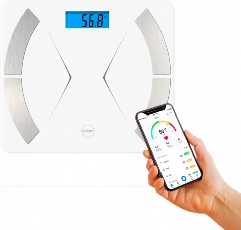 Onderzoek je lichaamsparameters met de Eldom-weegschaal, die BIA-technologie gebruikt om twaalf gegevens over je lichaam te analyseren, waaronder gewicht, BMI, vetpercentage, spier- en watermassa en meer. Met de weegschaal kun je ook de omgevingstemperatuur meten en gegevens opslaan voor meerdere gebruikers dankzij het ingebouwde geheugen en de koppeling met iOS- en Android-apparaten.