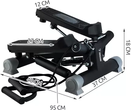 Thuis trainen was nog nooit zo eenvoudig. De schuine stepper TRIZAND combineert een dynamische twistbeweging voor intensieve vetverbranding met weerstandsbanden voor een volledige lichaamstraining. Het compacte formaat bespaart ruimte, terwijl de stabiele constructie belastbaar is tot 120 kg.