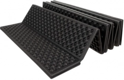 Lichte en compacte opvouwbare mat van duurzaam EVA-schuim biedt uitstekende thermische isolatie, comfort op harde ondergrond en waterbestendigheid. Dankzij het reliëfoppervlak met noppen is ze zachter en stabieler, vouwt ze gemakkelijk op tot een klein pakket en is ze geschikt voor kamperen, wandelen, vissen en picknicken.