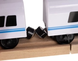 Kindvriendelijk, zonder scherpe randen. Het materiaal is natuurlijk hout, aangevuld met PP, ABS, ijzer en magneten.