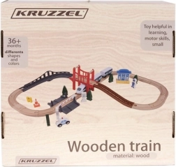 Maak kennis met een houten treinbaan die uren speelplezier biedt en de creativiteit van uw kinderen stimuleert. Deze set bevat 37 zorgvuldig vervaardigde en mooi afgewerkte onderdelen die naar eigen fantasie kunnen worden gerangschikt, waaronder een trein met passagierswagons, een brug en boompjes en verkeersborden.