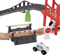 Deze houten treinbaan is de ideale oplossing om creativiteit en verbeeldingskracht bij kinderen te stimuleren. Hij is ontworpen zodat kinderen zich kunnen onderdompelen in de wereld van treinplezier, thuis of buiten. De set bevat in totaal 37 nauwkeurig afgewerkte onderdelen, waaronder een brug en gebouwen, die zorgen voor realistische speelelementen.