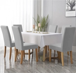 De grijze stoelhoes is ontworpen om bescherming te bieden tegen vlekken en mechanische schade. Het sterk elastische materiaal zorgt voor een universele maat die zich perfect aanpast aan de meeste stoelen. Hierdoor blijft de hoes stabiel en stevig op zijn plaats.