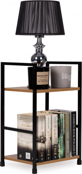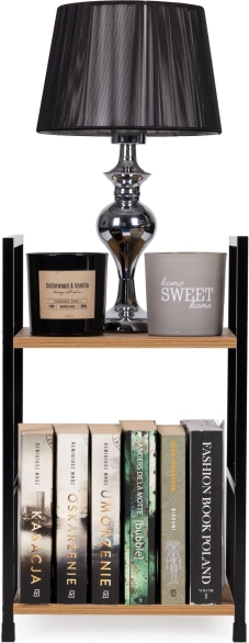 Stijlvolle loft-boekenkast/nachtkastje combineert een metalen frame en MDF-houten planken voor een moderne look en hoge stabiliteit. Dankzij de compacte afmetingen past hij perfect in de slaapkamer, woonkamer, hal en badkamer. Biedt 2 praktische planken, beschermende pootjes tegen krassen op de vloer en eenvoudige montage volgens de handleiding.
