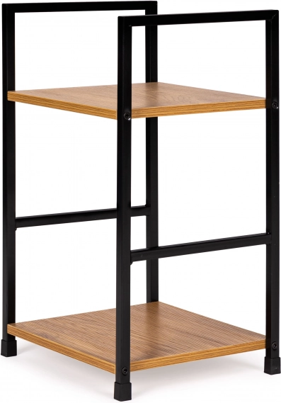 Breng een pure industriële stijl in je interieur. Dit minimalistische rek met een hoogte van 48,5 cm en twee planken van 23,5 × 29 cm biedt ruimte voor boeken, decoraties, planten en een nachtlampje. Stevig poedergecoat metaal in combinatie met MDF-planken met houtdecor garandeert duurzaamheid en een tijdloze look.